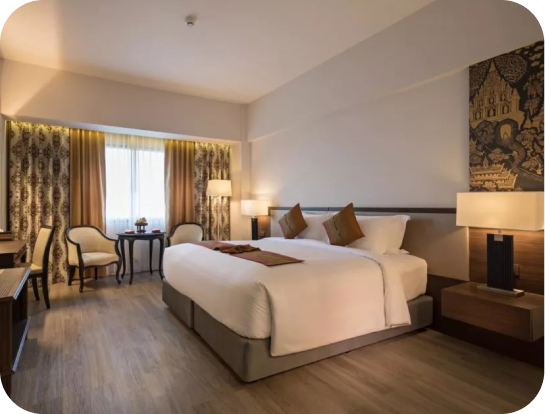 Un exclusivo resort que ofrece lujo y tranquilidad en Siem Reap. Ubicado cerca de los templos de Angkor, cuenta con jardines tropicales, piscina al aire libre, spa y restaurantes de alta cocina. Ideal para descansar después de explorar el patrimonio cultural de Camboya.