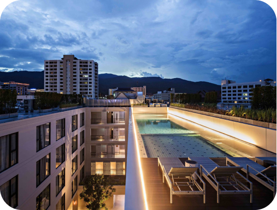 Un hotel moderno en el animado barrio de Nimman, rodeado de cafés, tiendas y vida nocturna. Ofrece habitaciones confortables, piscina, gimnasio y restaurante internacional. Su ubicación es perfecta para disfrutar tanto del ambiente urbano como de las tradiciones de Chiang Mai.