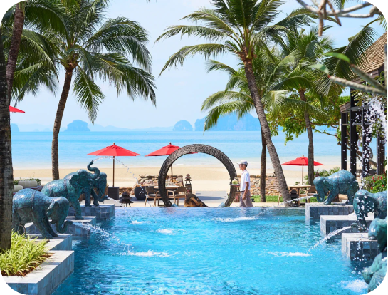Un resort boutique frente a la tranquila playa de Tubkaek. Combina lujo y naturaleza con habitaciones elegantes, spa, piscinas y restaurantes frente al mar. Es un refugio perfecto para relajarse y disfrutar de las espectaculares vistas del mar de Andamán.